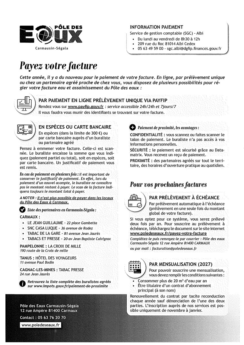 Nouveaux moyens de paiement de votre facture d'eau
